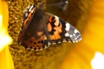These are not the typical images of winter, I know. It is -20 degrees celsius outside my front door and with the wind chill, about -480. I used these pictures of the butterfly, taken November 2008, because it was cold outside then. Not as cold as today, but the butterfly was slowing down. While I stood there with my camera (and it was for quite a while because I realized after shooting about a hundred photo’s that I didn’t have my SD card in the camera so had to dig it out of the camera case) the butter fly didn’t move. It took ages for it to open and close its wings and wasn’t in a hurry to head out and off that 9′ flower head. It was safe, at least for the moment, and had the sun on its back. What’s the hurry?