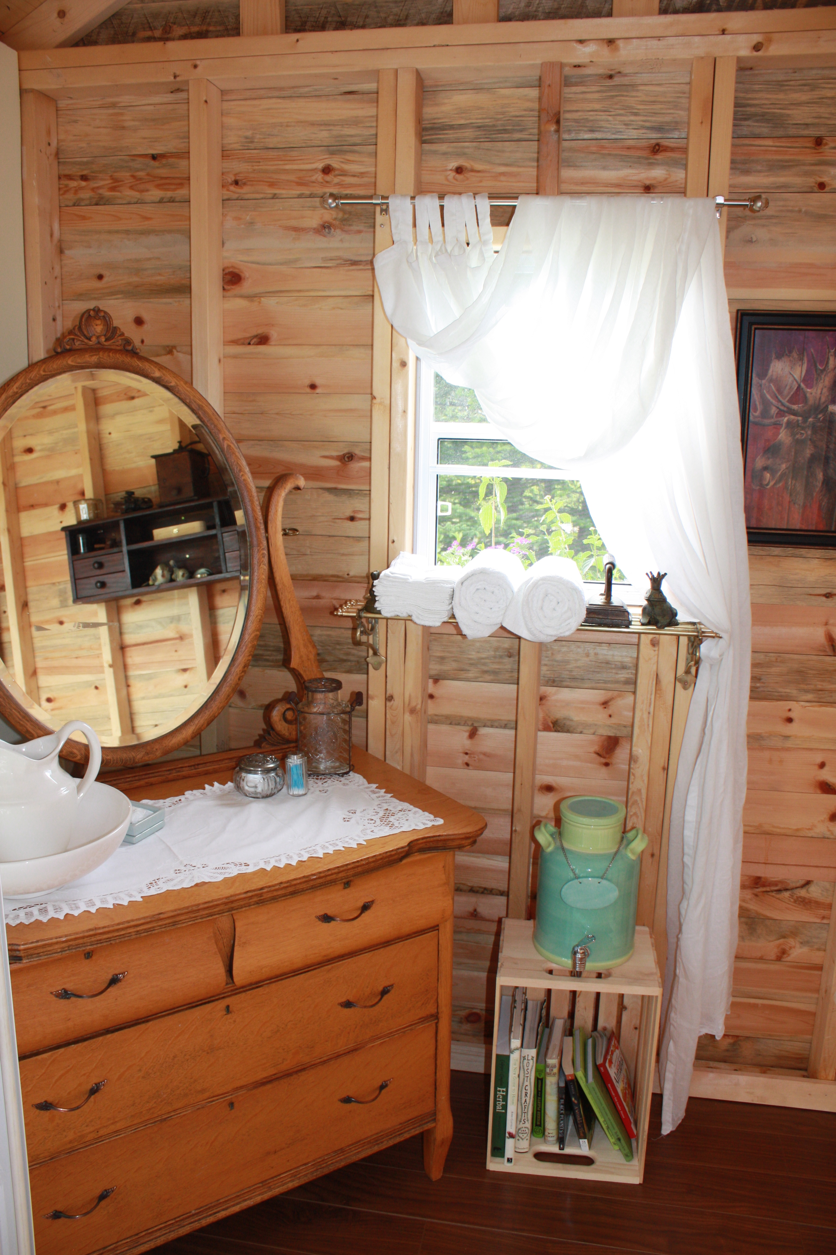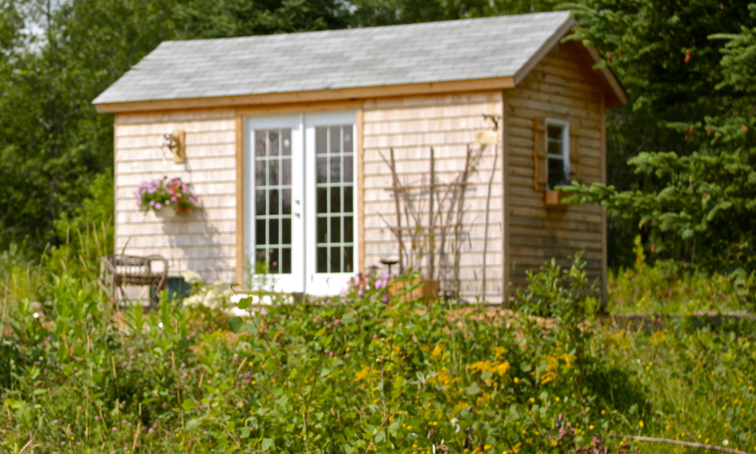 This guest cottage only had two guests last summer. (it didn’t get finished until August) I hope it gets more use this summer. Great for sleeping when the nights are cool, but it sits out in the open, alongside the orchard and heats up during the day – making it quite stifling midday. Maybe we’ll get to insulating it at some point to make it comfortable no matter the time of day. It needs a coat of paint or stain, and a shade tree beside it. It keeps the rain off and the critters out, though.